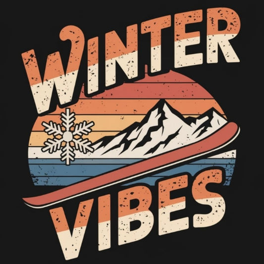 Retro Mountain Winter Vibes Black Cotton T-Shirt
