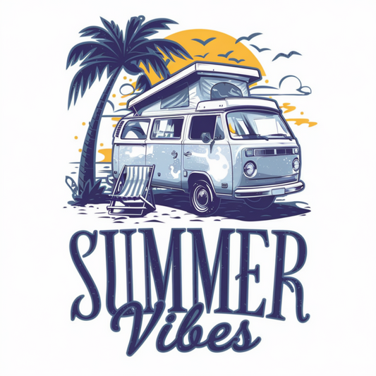 Summer Vibes Graphic T-Shirt with Palm Tree and Van Design