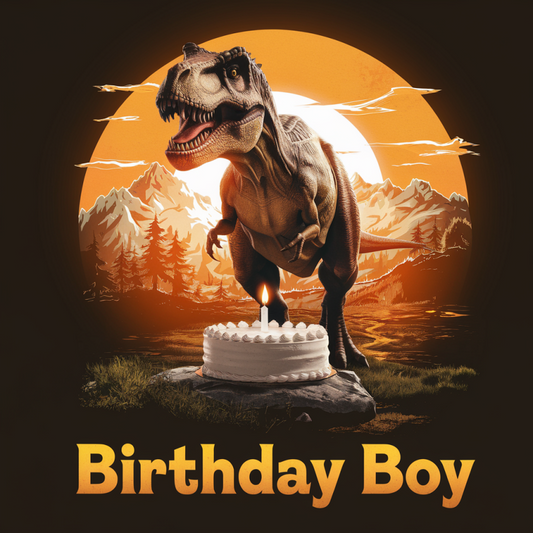 Dinosaur T-Rex Birthday Cake Black Cotton Shirt