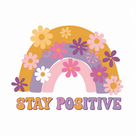 Stay Positive Graphic T-Shirt with Flower Rainbow DesignRegular price $29.90 USDRegular priceUnit price / per-