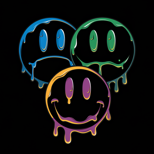 Colorful Dripping Smiley Face Graphic T-Shirt