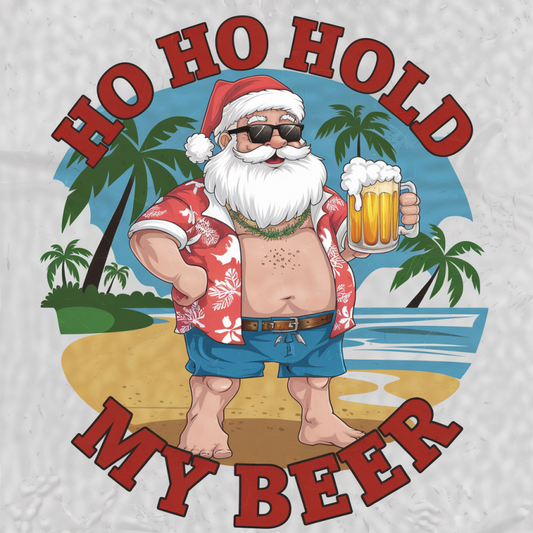 Funny Santa Claus Beach T-Shirt - Ho Ho Hold My Beer