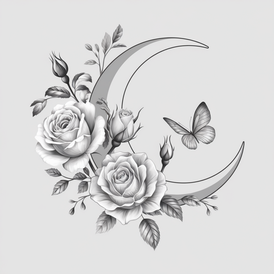 Artistic Floral Rose and Butterfly Graphic T-Shirt