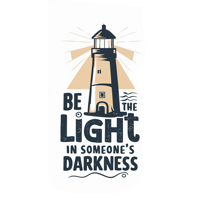 Inspire hope with our 'Be the Light in Someone's Darkness' T-shirt, featuring a striking lighthouse design and motivational lettering. Perfect for casual wear or as a meaningful gift.