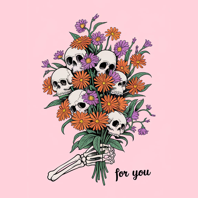 A stylish t-shirt featuring a skull and flower graphic, perfect for modern fashion enthusiasts.