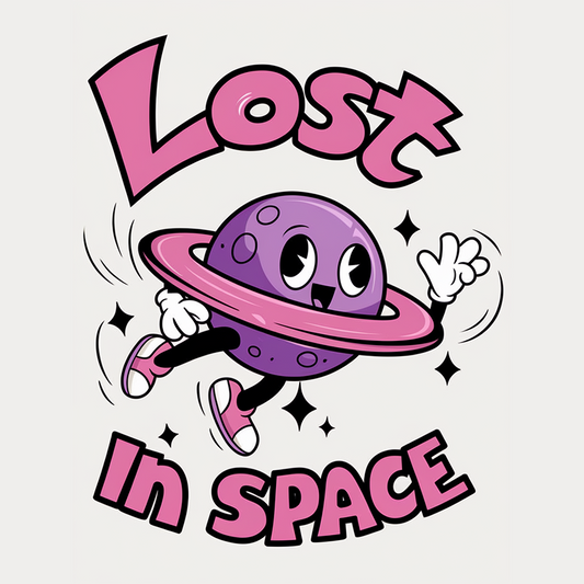 Lost in Space Cartoon T-Shirt with Purple Planet Design