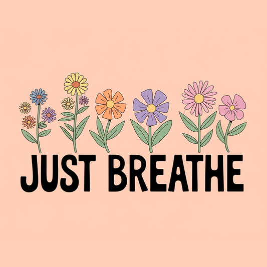 Floral Just Breathe T-Shirt - Casual White Tee with Motivational Quote
