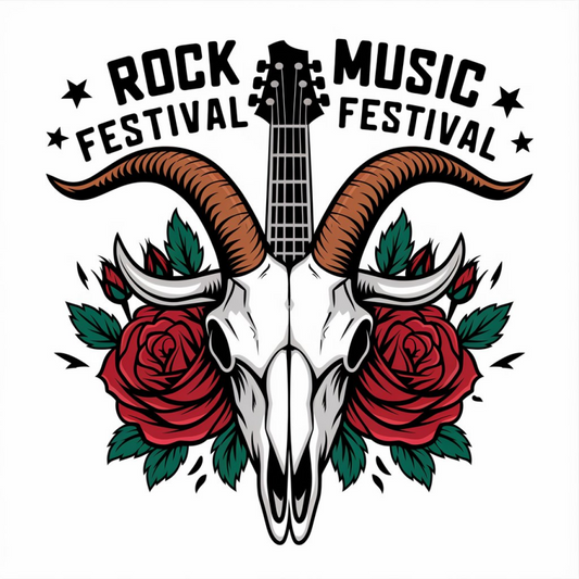 Rock Music Festival Skull and Guitar Graphic T-Shirt