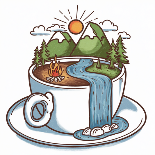NatureScape Graphic Cotton T-Shirt, Scenic Coffee Cup Design