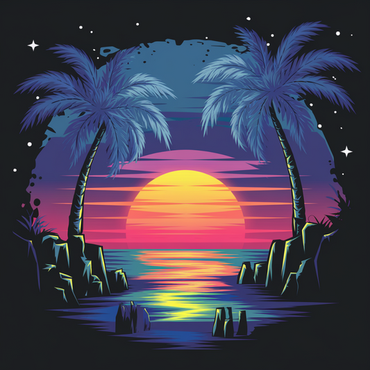 Sunset Palm Trees Graphic Cotton T-Shirt