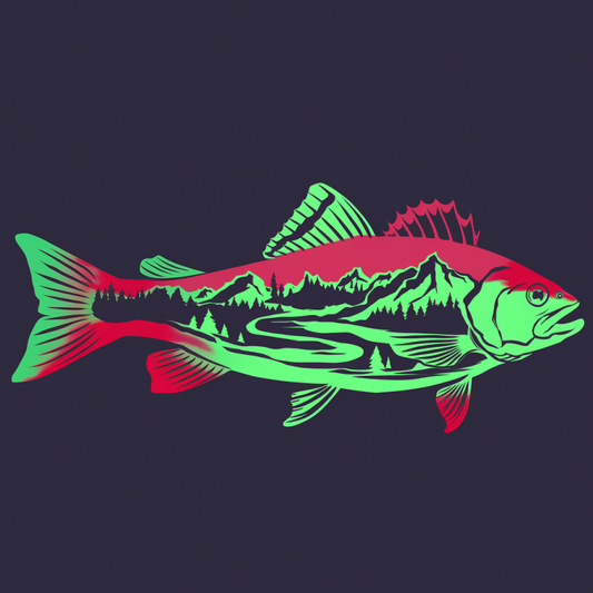 FishArt Neon Fish Graphic Black Cotton T-Shirt