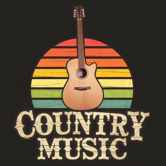 Retro Country Music Guitar Graphic Cotton T-Shirt