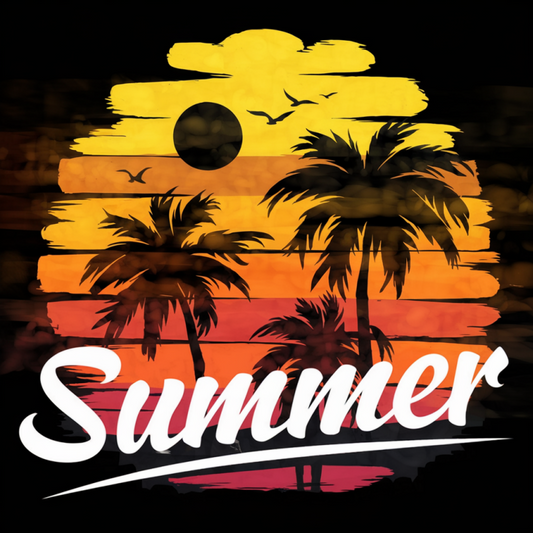 Sunset Palm Tree Summer Graphic Cotton T-Shirt