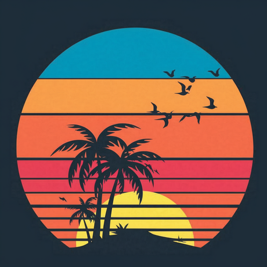 Retro Sunset Palm Tree Graphic Cotton T-Shirt