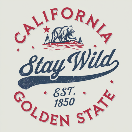 Stay Wild California Bear Graphic Cotton T-Shirt