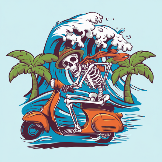 Retro Skeleton Scooter Graphic Cotton T-Shirt