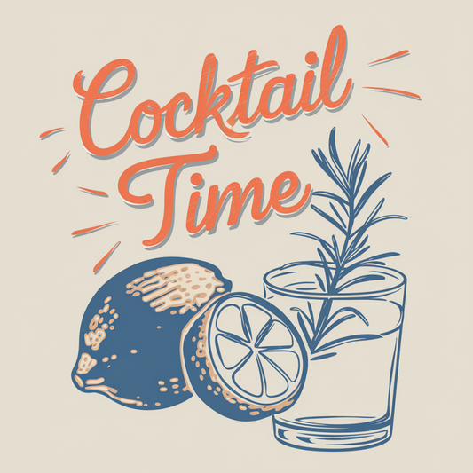 Retro Cocktail Time Lemon Graphic Cotton T-Shirt