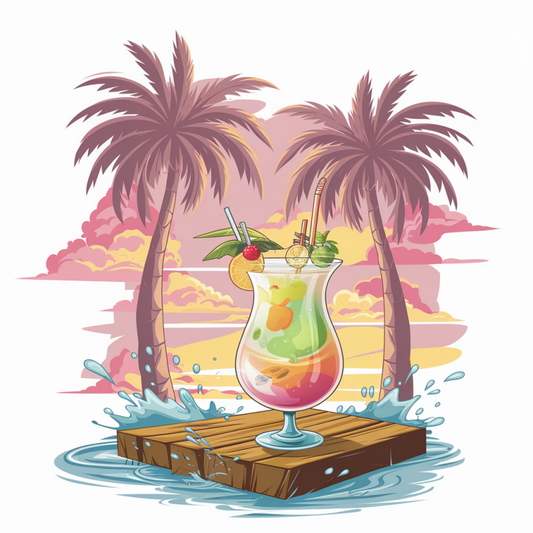 TropiChill Palm Sunset Cocktail Graphic T-Shirt