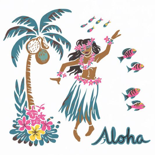 Hawaiian Aloha Graphic T-Shirt with Hula Dancer