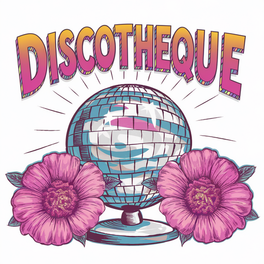 Discotque Retro Graphic T-Shirt with Floral Design