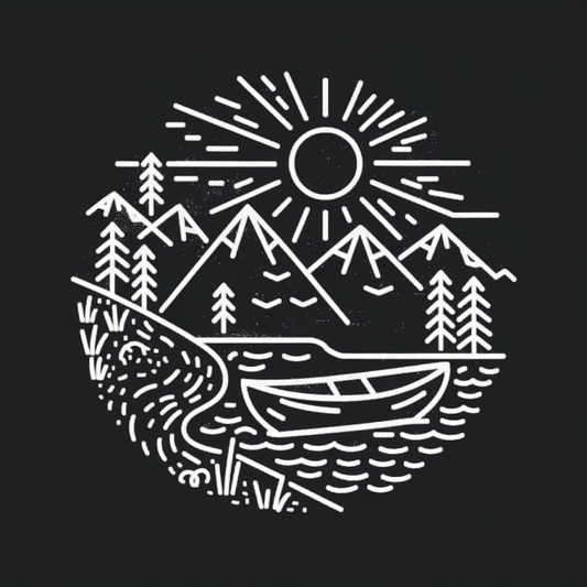 Outdoor Adventure Graphic T-Shirt - Black with Mountain and Water Design