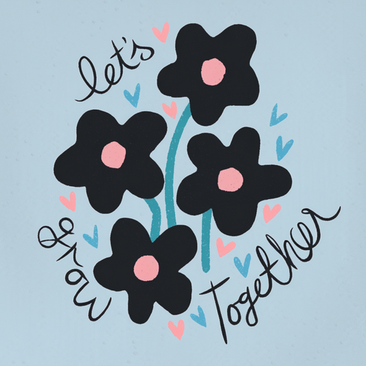 Floral Graphic T-Shirt with 'Let's Grow Together' Design