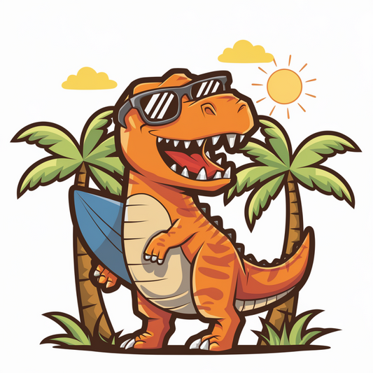 Cartoon T-Rex Surfing T-Shirt for Kids