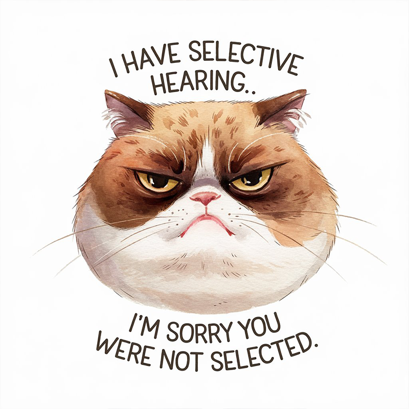 A stylish t-shirt featuring a unique pattern and the bold statement: 'I have selective hearing, I'm sorry you were not Selected'.