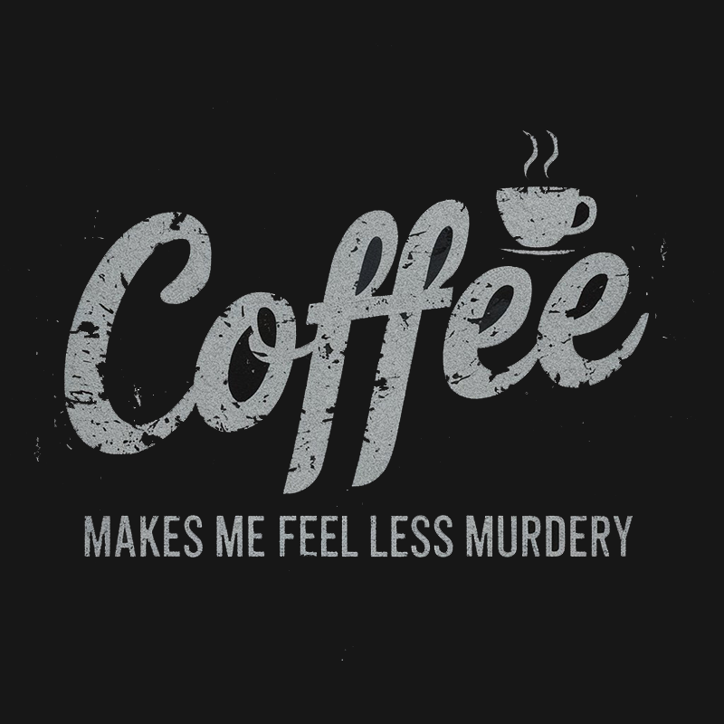 A comfortable and stylish t-shirt featuring the humorous phrase 'Coffee Makes Me Feel Less Murdery'.