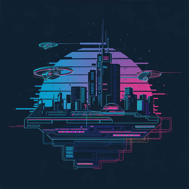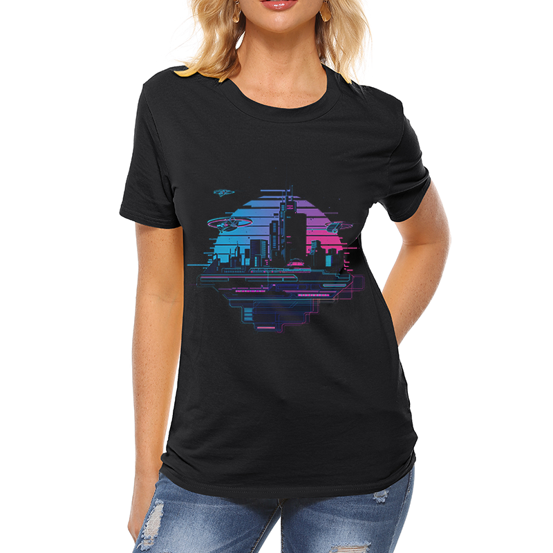 A stylish casual t-shirt featuring unique technology and architecture-inspired designs.