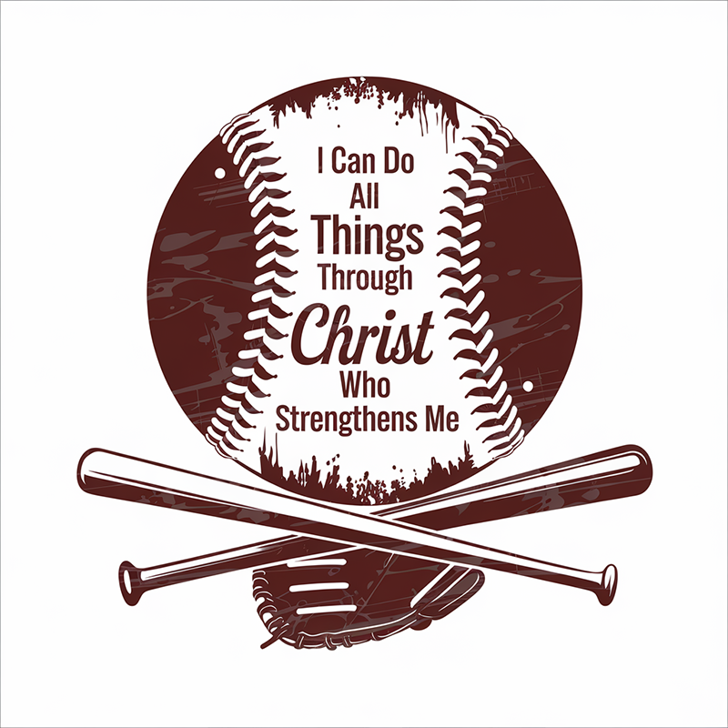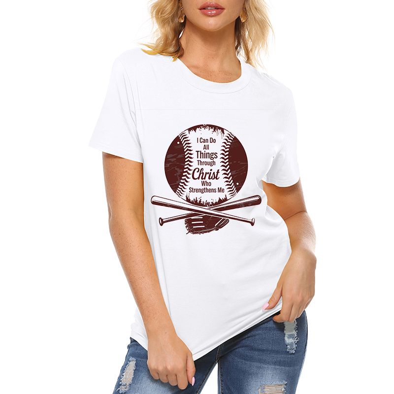 A stylish t-shirt featuring the inspirational quote 'I CAN DO ALL THINGS THROUGH CHRIST WHO STRENGTHENS ME' with unique elements like letters and balls.
