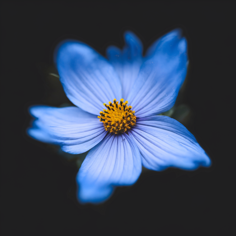 Floral Blue Flower Graphic Tee - Casual Black T-Shirt