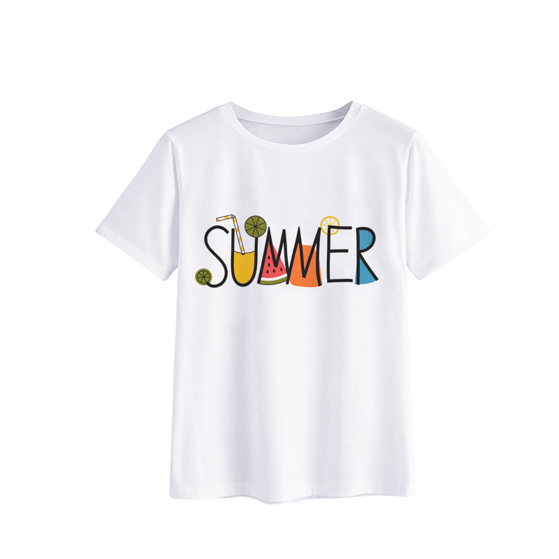 Embrace the sunny season with our Summer Vibes Graphic T-Shirt, featuring a vibrant and playful design that showcases refreshing summer drinks and fruits. Made from lightweight, breathable cotton, this t-shirt offers comfort and style for all your summer adventures. The bold 'SUMMER' print, adorned with colorful illustrations of watermelon, citrus slices, and drink glasses, makes it perfect for beach outings, casual hangouts, or summer festivals. Ideal for layering or wearing solo, this t-shirt is a must-have addition to your warm-weather wardrobe.