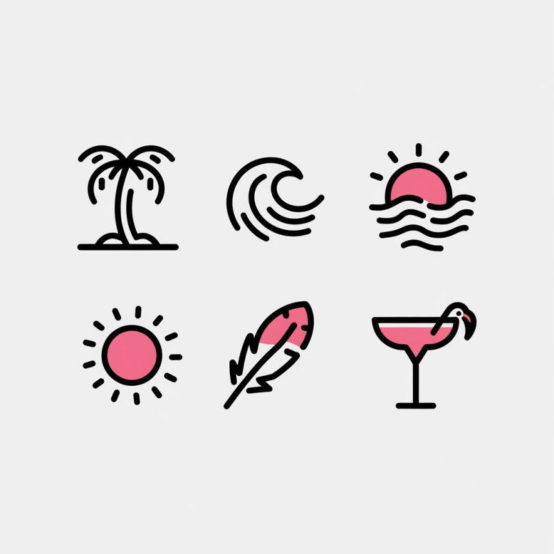 A breezy casual top adorned with vibrant coconut trees, serene sea waves, radiant sun motifs, delicate feathers, and playful cocktails.