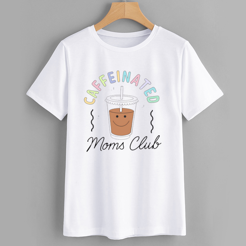 Join the fun with our Caffeinated Moms Club Graphic T-Shirt, perfect for coffee-loving moms! This stylish white tee features a playful design with a smiling coffee cup, colorful lettering, and a relaxed fit for all-day comfort. Made from soft, breathable fabric, it's ideal for casual outings, playdates, or lounging at home. Show off your love for caffeine and motherhood with this unique shirt that makes a great gift for any mom who enjoys a good cup of coffee.