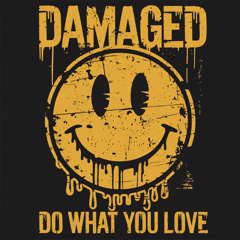 A fun and edgy T-shirt featuring a graffiti-style smiley face with a distressed texture.