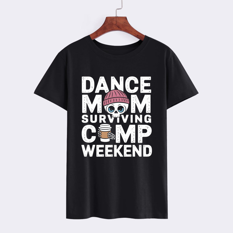 Celebrate the busy life of a dance mom with this fun and stylish 'Dance Mom Surviving Camp Weekend' graphic tee. Made from high-quality cotton, this black t-shirt features a playful skull design wearing a pink beanie, perfect for showcasing your fun-loving spirit while supporting your dancer. Ideal for camp weekends, dance competitions, or casual outings, this shirt combines comfort with a trendy look. It's a great gift for dance moms who embrace the chaos of parenting and want to express their pride and humor.