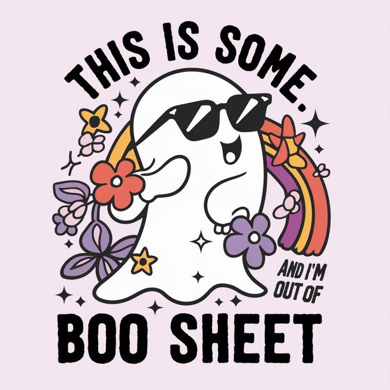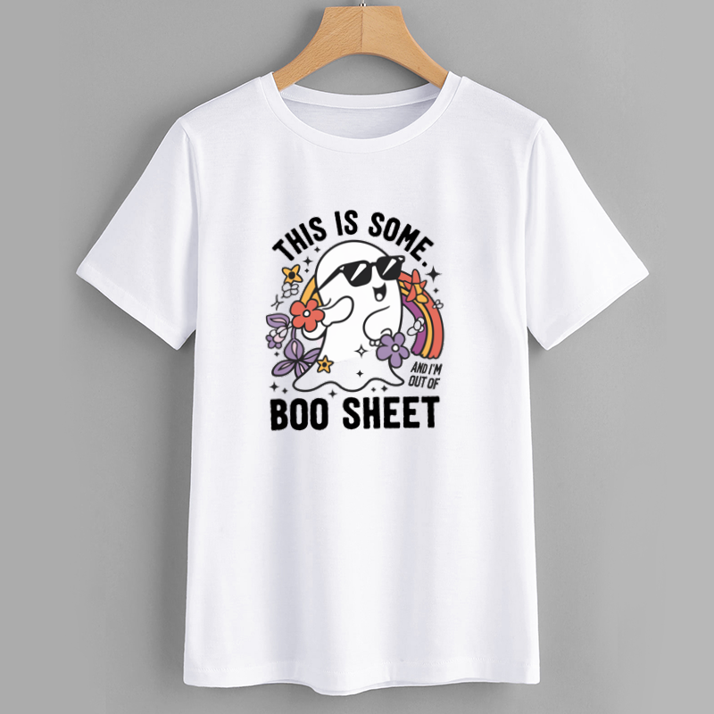 Embrace the spooky season with our Funny Ghost Graphic T-Shirt, featuring a playful ghost design complete with sunglasses and colorful floral elements. Made from soft, breathable cotton, this casual tee is perfect for Halloween festivities or everyday wear. The humorous phrase 'This Is Some Boo Sheet' adds a fun twist to your wardrobe. Ideal for those who love to celebrate Halloween with a touch of humor. Available in various sizes, this shirt is designed for comfort and style.