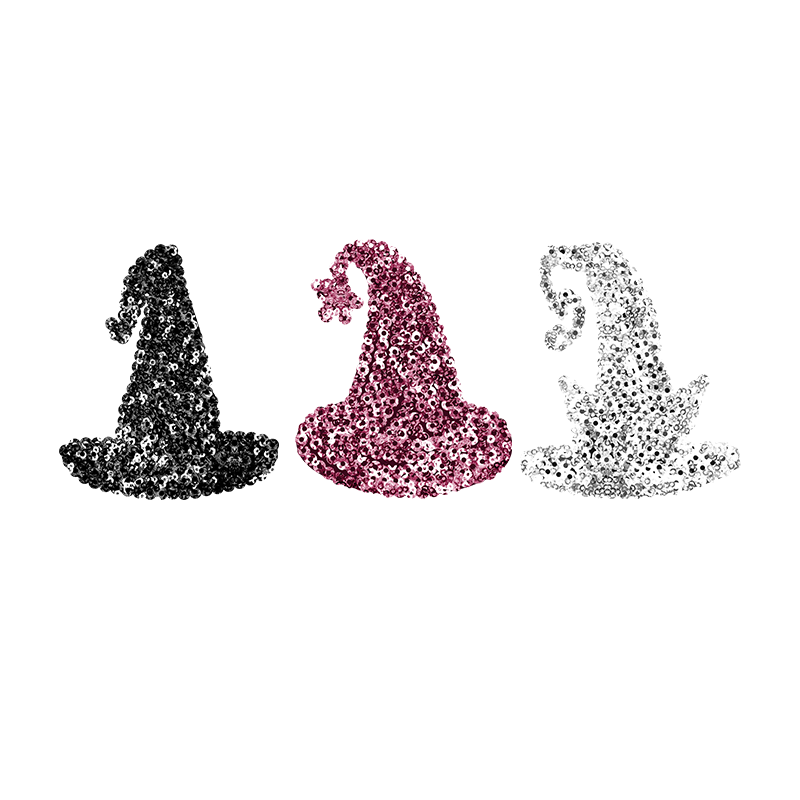 A stylish Halloween-themed top featuring a cute sequined witch hat design.