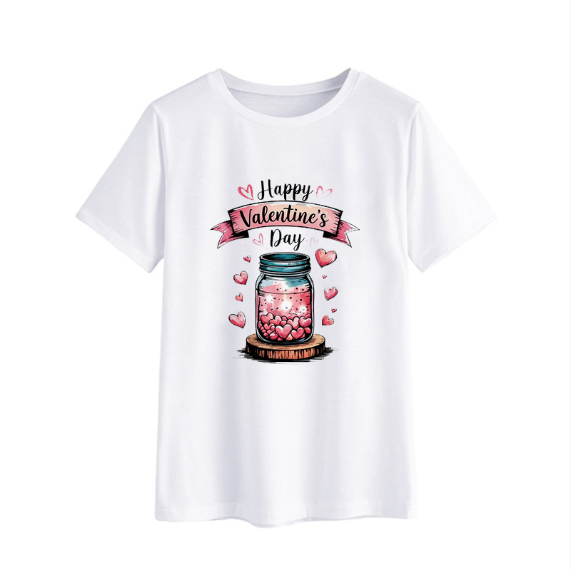 Celebrate love with our Happy Valentine's Day Heart Jar Graphic Tee! This charming white t-shirt features a colorful illustration of a jar filled with pink hearts, adorned with a festive banner that reads 'Happy Valentine's Day'. Made from soft, breathable fabric, this tee is perfect for casual outings or cozy nights in. Whether you're planning a romantic date or simply want to spread some love, this shirt is a delightful addition to your wardrobe. Great for gifting to your loved ones or as a treat for yourself!