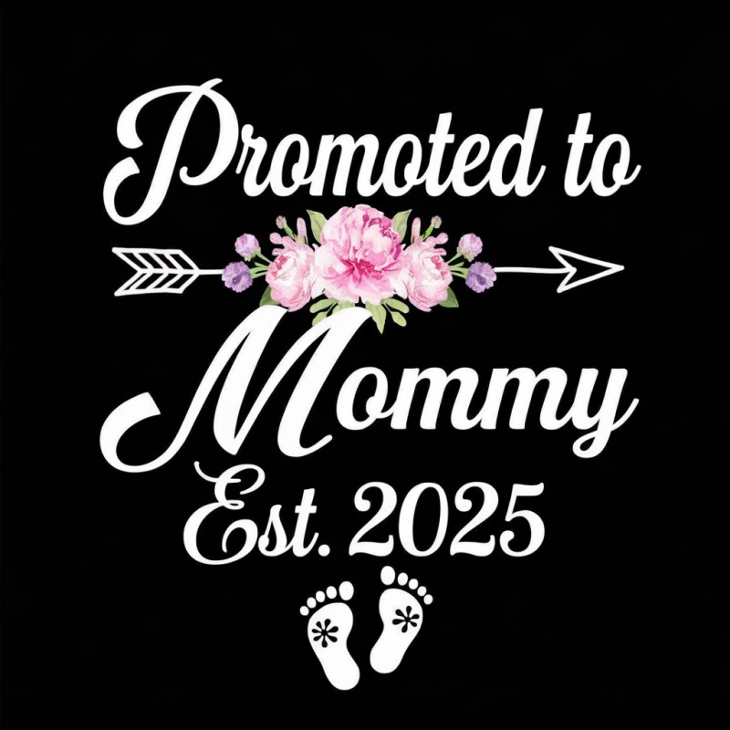 Celebrate the exciting journey of motherhood with our 'Promoted to Mommy' T-shirt, designed for the proud mom-to-be. This stylish black tee features a beautiful floral design with the phrase 'Promoted to Mommy' and 'Est. 2025', making it a perfect announcement for your growing family. Made from high-quality, soft cotton fabric, it ensures comfort while showcasing your joy. Ideal for maternity wear, baby showers, or as a thoughtful gift for any new mom.