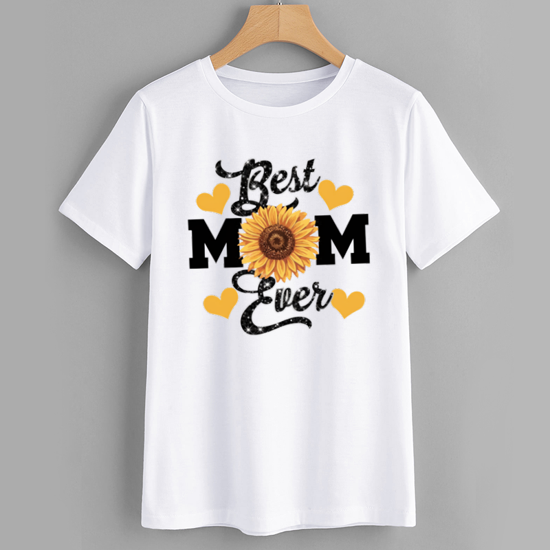 Sunflower Best Mom Ever Cotton Graphic T-Shirt